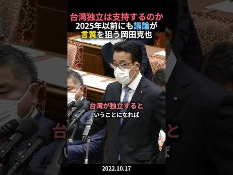 はじめに 岡田克也 台湾に関して最近注目されているのは、衆院予算委員会で岡田克也元外相が高市早苗首相に「台湾有事は日本の存立危機事態になり得るか」を問いただし、首相が踏み込んだ答弁を引き出したことです。 このやり取りは日中関係に影響し、中国側の反発や日本国内での議論を呼んでいます。 岡田氏はその後の動画やメディア出演でも慎重な発言を求めていますこの記事では岡田克也 台湾に関わる動画をみていきましょう! 1つ目の動画:【支持しますか。】岡田克也が2025年以前にも迫っていた台湾有事 #政治ニュース #政治 ...